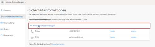 Preparation: Login at https://mysignins.microsoft.com/security-info with your known THD user data (and if necessary a 2nd factor already stored by you).