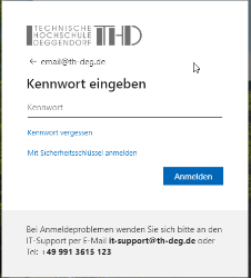 The backup variant "MFA via telephony (SMS)" is recommended if the USB security key has been lost or the "Microsoft Authenticator" app cannot be used due to the loss or defect of the smartphone.