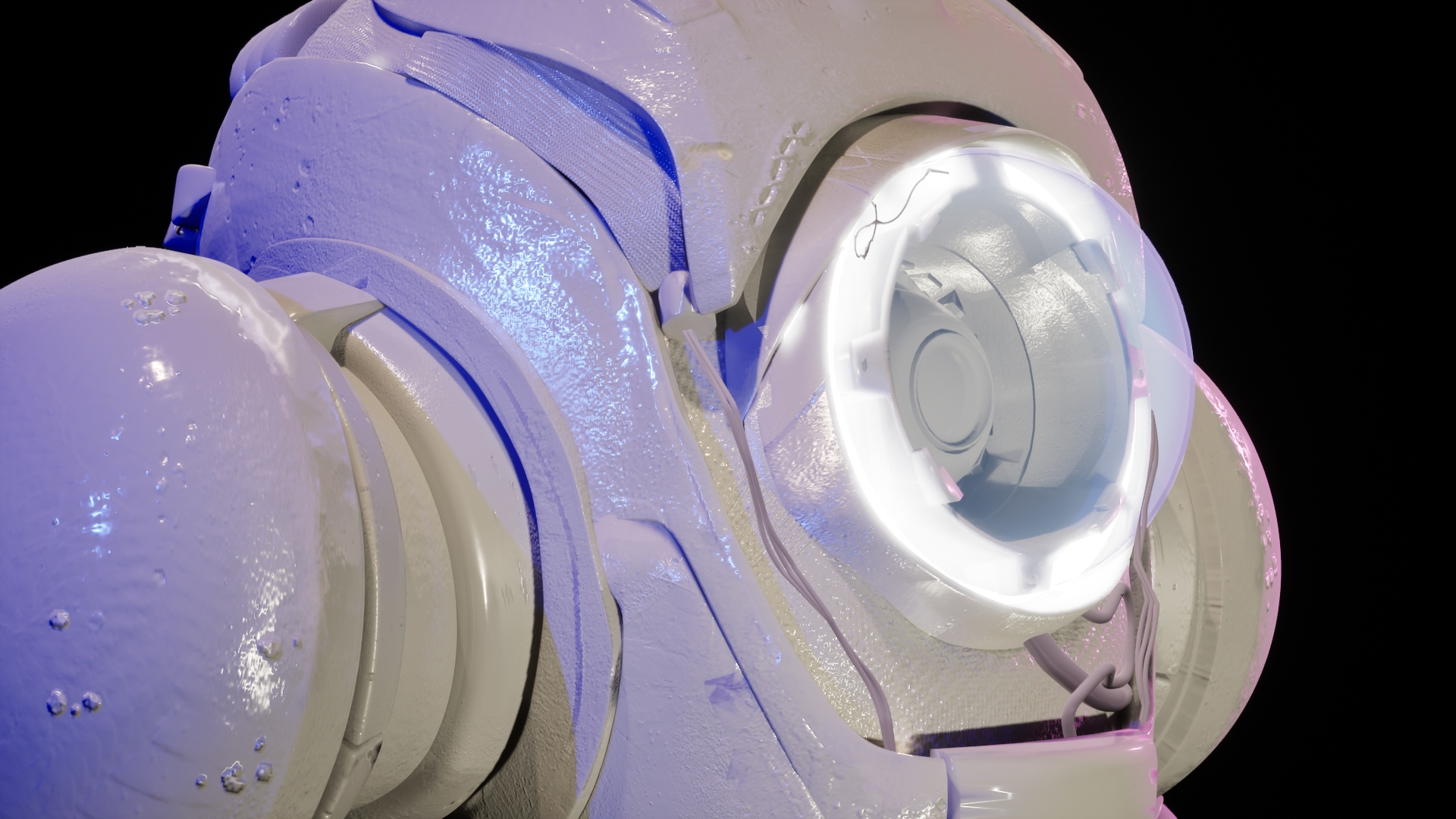 Im Zentrum des Projekts steht ein eigens entworfener Charakter. Ein roboterhafter Hundesitter, dessen Aufgabe ursprünglich die Pflege und der Schutz von Hunden auf einem Raumschiff war. Der Charakter wurde zunächst anhand von Skizzen konzipiert und anschließend vollständig in 3ds Max modelliert. Besonderer Wert wurde auf saubere Topologie gelegt, um eine reibungslose Weiterverarbeitung, Animation und spätere Erweiterbarkeit zu ermöglichen.