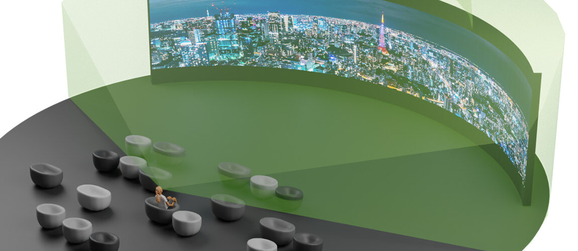 Das Panoramakino in der Autostadt Wolfsburg, dem Auslieferungszentrum, Museum und Freizeitgelände der Volkswagen AG, ist ein multifunktionaler Raum, der für die Ausstrahlung von Werbefilmen, Konferenzen, Live-Events und Tanzveranstaltungen genutzt wird. Der Raum weist dabei einige Besonderheiten auf. Die erste Besonderheit ist die Leinwand, die nicht auf Projektion setzt, sondern aus 46 × 9 LED-Modulen besteht, welche mit einem Versatz von 2,5° die gebogene Leinwandfläche von rund 90 m² und einem extrabreiten Format erzeugen. Die zweite Besonderheit ist das Audiosystem mit Wellenfeldsynthese.