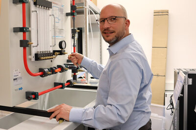 Ist er nicht an seinem Arbeitsplatz anzutreffen, hat er in einem der beiden Campus-Gebäude zu tun. Nötigenfalls hilft Hofbauer einem Professor, das Tablet im Hörsaal zu verbinden. Oder er unterstützt die Laboringenieure beim Aufbau neuer Geräte. Des Weiteren koordiniert er den Einsatz von Fremdfirmen, wenn Reparaturen anstehen, der Aufzug gewartet wird oder wie kürzlich ein neuer Vinylboden den alten Teppich ersetzt. Beim SILC-Laborgebäude war er genau der Richtige, um die installierte Hybridheizung zu optimieren. „Seitdem sparen wir einiges an Gas ein“, so Hofbauer nach getaner Arbeit. Aus gutem Grund sagt der Handwerker: „Ich bin ein vielseitiger Problemlöser.“