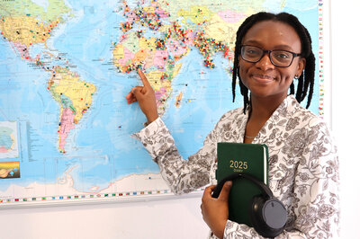 Seit ihrem erfolgreichen Master-Abschluss im vergangenen Herbst vertieft die junge Forscherin als wissenschaftliche Mitarbeiterin im Bereich Tourismus die Ansätze ihrer Master-Arbeit. Darüber hinaus gehört sie am European Campus zu den Initiatoren des ECRI Art Club, der kreativ mit der örtlichen Realschule zusammenarbeitet. „Kunst ist eine ganz besondere Art, in der sich Menschen ausdrücken“, findet Oluwamodupe Adewunmi Oduyoye, die am Campus kurz Mo gerufen wird. In ihrer Freizeit spielt die junge Frau gerne Gitarre und leitetet den Chor der Evangelischen Freikirche.