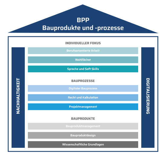 Daher musst du als BPP-Ingenieurin oder -Ingenieur Englisch und Deutsch beherrschen, und wir haben das auch in unserem Studiengang „Building Products and Processes“ schon berücksichtigt: