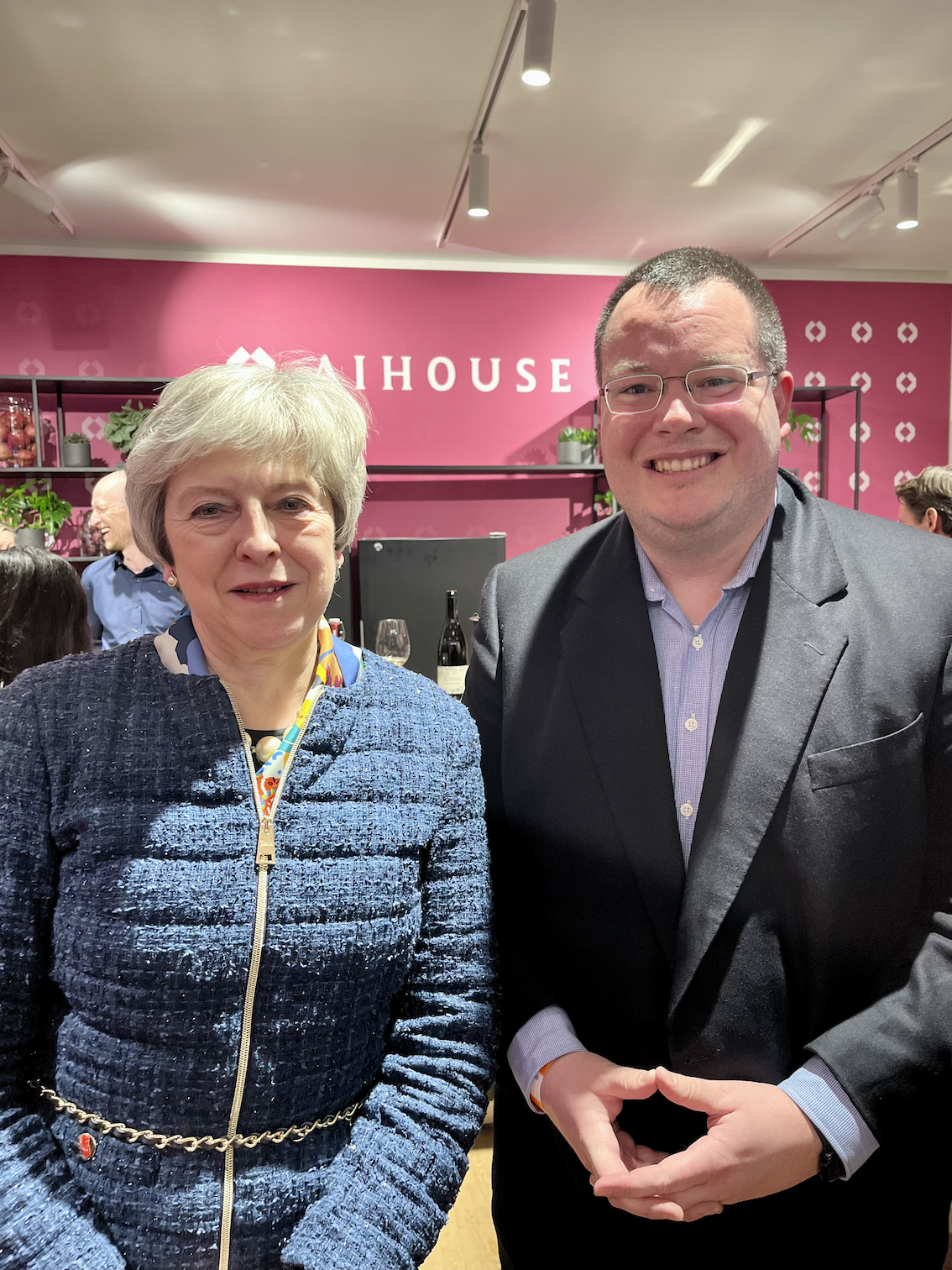 Bild (THD): Im AI House kam Prof. Dr. Patrick Glauner (rechts) auch mit der früheren Premierministerin des Vereinigten Königreichs Theresa May ins Gespräch.