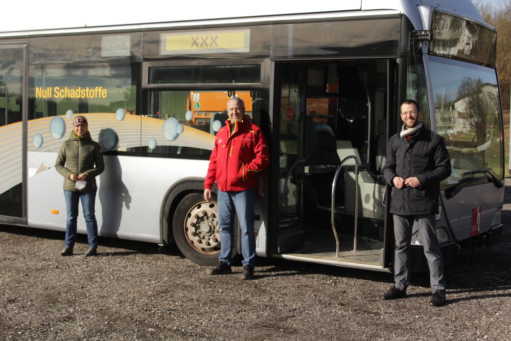 Bild (ECRI/THD): Jennifer Huber, Hans Esprester vom Landratsamt Rottal-Inn und Robert Feicht (v.l.n.r.) nahmen den Bus am ECRI in Empfang