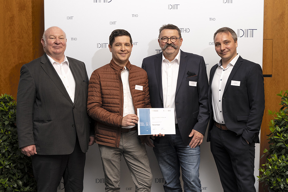 Bild (THD): (v.l.) THD-Präsident Prof. Waldemar Berg und die Förderer der CWI Enterprise Solutions GmbH Mihaly Kozma, Johann Haslbeck, Sergej Müller.