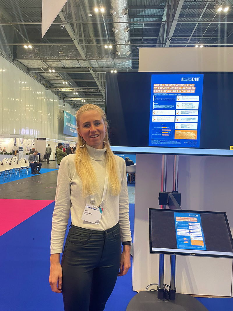 Bereits im November 2023 folgte Bauernfeind dem Call for Abstracts und reichte eine ihrer Forschungsarbeiten ein. Nach der Annahme konnte sie die Ergebnisse nun in London vorstellen und präsentierte ein aktuelles Projekt der Kinderklinik Dritter Orden Passau zur Vermeidung von Druckverletzungen bei Kindern im Krankenhaus. Dort wurde im vergangenen Jahr ein umfangreiches Qualitätsverbesserungsprojekt durchgeführt, in dessen Rahmen ein neues Risikoerhebungsinstrument sowie ein spezielles Verfahren eingeführt und in Schulungen an das Personal weitergegeben wurden. Die neuen Maßnahmen konnten in die pflegerische Versorgung der Kinder implementiert und präventive Schritte zur Vermeidung von Druckverletzungen, beispielsweise durch notwendige Geräte oder Bewegungseinschränkungen der Kinder, eingeleitet werden.