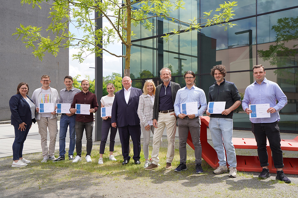 Bild (THD): Urkundenübergabe des Gerti & Heinz Iglhaut Stipendiums: Stefanie Möginger, Leiterin des THD-Career Service, Thomas Simet, Sebastian Mück, Tobias Wildfeuer, Sophia Meier, THD-Präsident Prof. Waldemar Berg, Gerti Iglhaut und Heinz Iglhaut von der Gerti & Heinz Iglhaut Stiftung, Adam Leander, Josef Ziegltrum und Udo Schmidt. (v.l.n.r.)