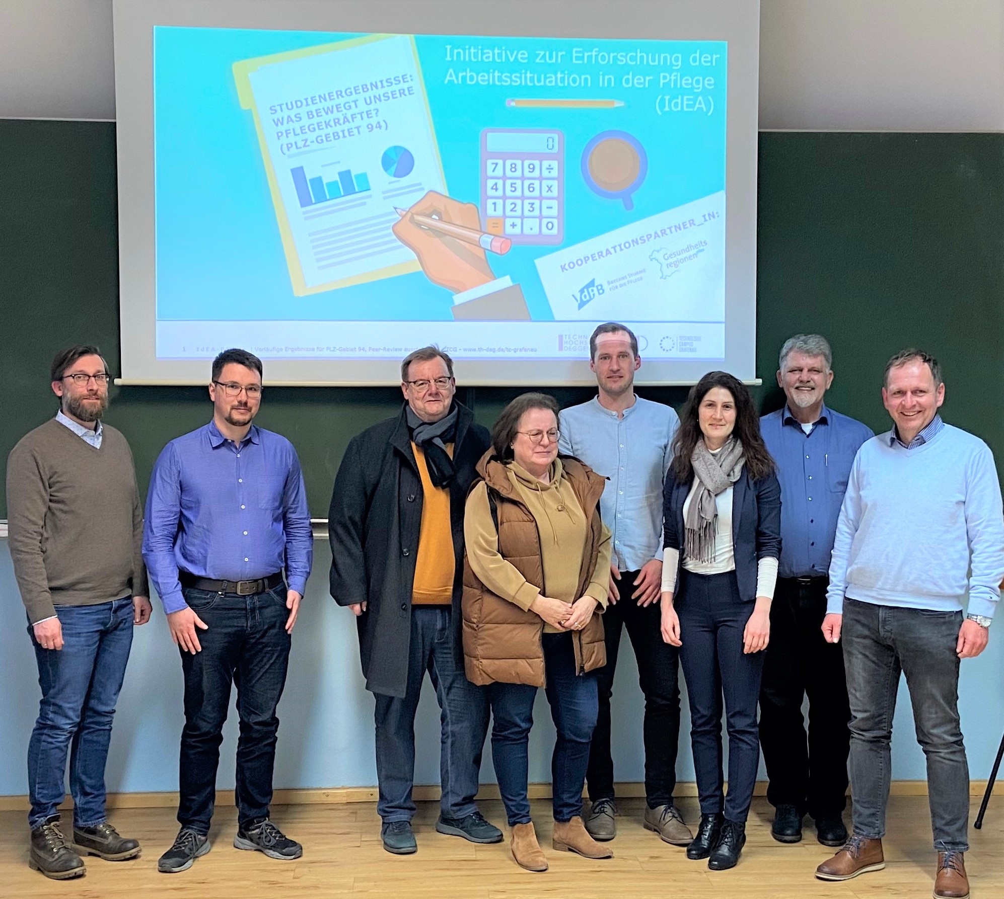 Bild (Landratsamt Freyung-Grafenau): Der Arbeitskreis Pflege der GesundheitsregionPlus wurde über die Ergebnisse der Pflegebefragung informiert (v. l.): Christian Fiebig (Landratsamt Freyung-Grafenau), Domenic Sommer (Technologie Campus Grafenau), Josef Bauer (Kreis-Caritasverband Freyung-Grafenau), Angelika Schwarz (Rosenium GmbH), René Kurtz (GesundheitsregionPlus), Dr. Carolin Müller (Gesundheitsamt Landkreis Regen), Volker Gießübl (Pflegeakademie Grafenau) und Rainer Stocker (Kliniken Am Goldenen Steig).