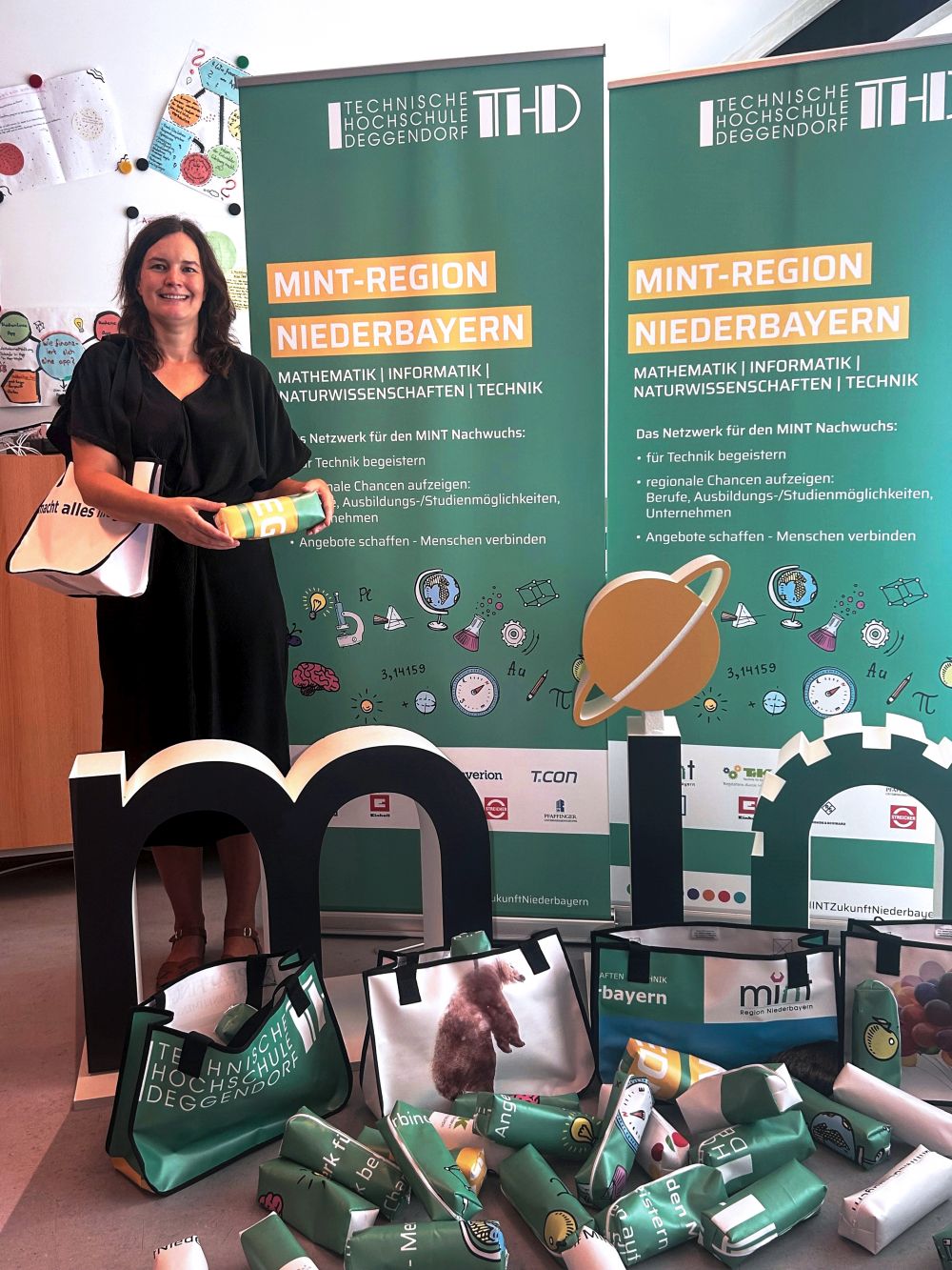 Die für das Upcycling verwendeten Roll-ups stammen vom MINT-Team und der MINT-Region Niederbayern, die ihren Sitz an der THD hat. Als zentrale Anlaufstelle für MINT-Bildung in der Region bietet das MINT-Team vielfältige Informationen und Angebote, um junge Menschen für Naturwissenschaften und Technik zu begeistern. Durch zahlreiche MI(N)Tmach-Aktionen unterstützen sie aktiv bei der Berufs- und Studienorientierung und machen die vielfältigen Chancen und Möglichkeiten in diesem Bereich sichtbar. Die MINT-Region Niederbayern ist Teil des bundesweiten Netzwerks der MINT-Regionen. Der Zusammenschluss verschiedener Unternehmen der Region, der THD und dem Verein Technik für Kinder e. V. macht sich seit vielen Jahren dafür stark, jungen Menschen in der Region MINT-Themen nahe zu bringen. Dabei geht es um konkrete Möglichkeiten, bei denen Kinder und Jugendliche auf Tuchfühlung mit Themenfeldern aus den MINT-Bereichen gehen können. Für weitere Informationen zur MINT-Region Niederbayern steht THD-Referatsleiterin und MINT-Managerin Eva Streicher unter info@mint-niederbayern.de zur Verfügung.