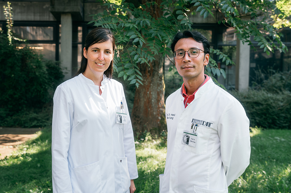 Bild (Julia Drahan): Beteiligt am EU-geförderten Projekt ERMES: Prof. Dr. Silke Härteis und Prof. Dr. med. Thiha Aung (v. l.).