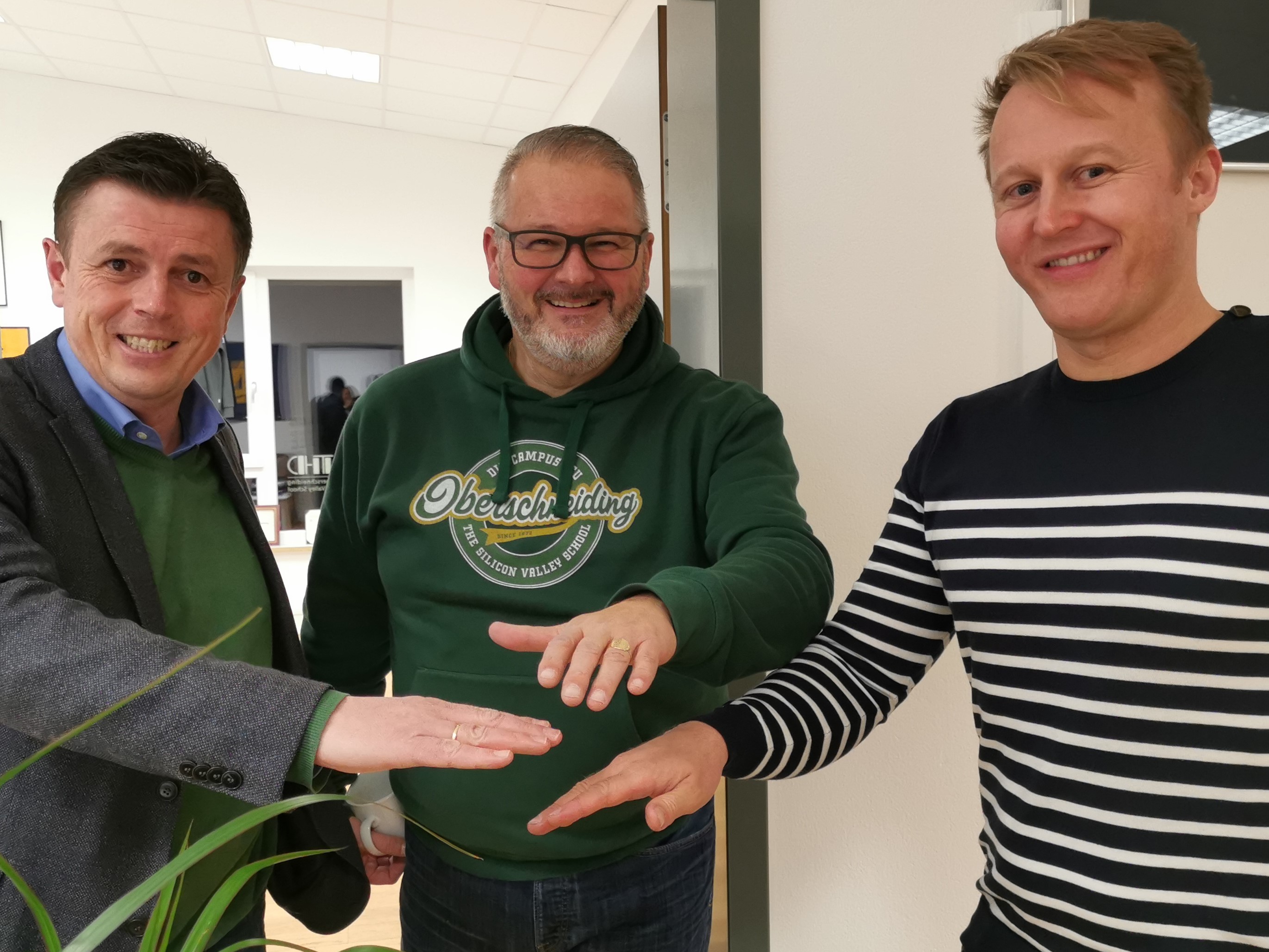 Bild (BITZ): Oberschneidings Bürgermeister Ewald Seifert begrüßt gemeinsam mit Prof. Peter Schmieder den neuen Professor am BITZ, Dr. Tobias Strobl