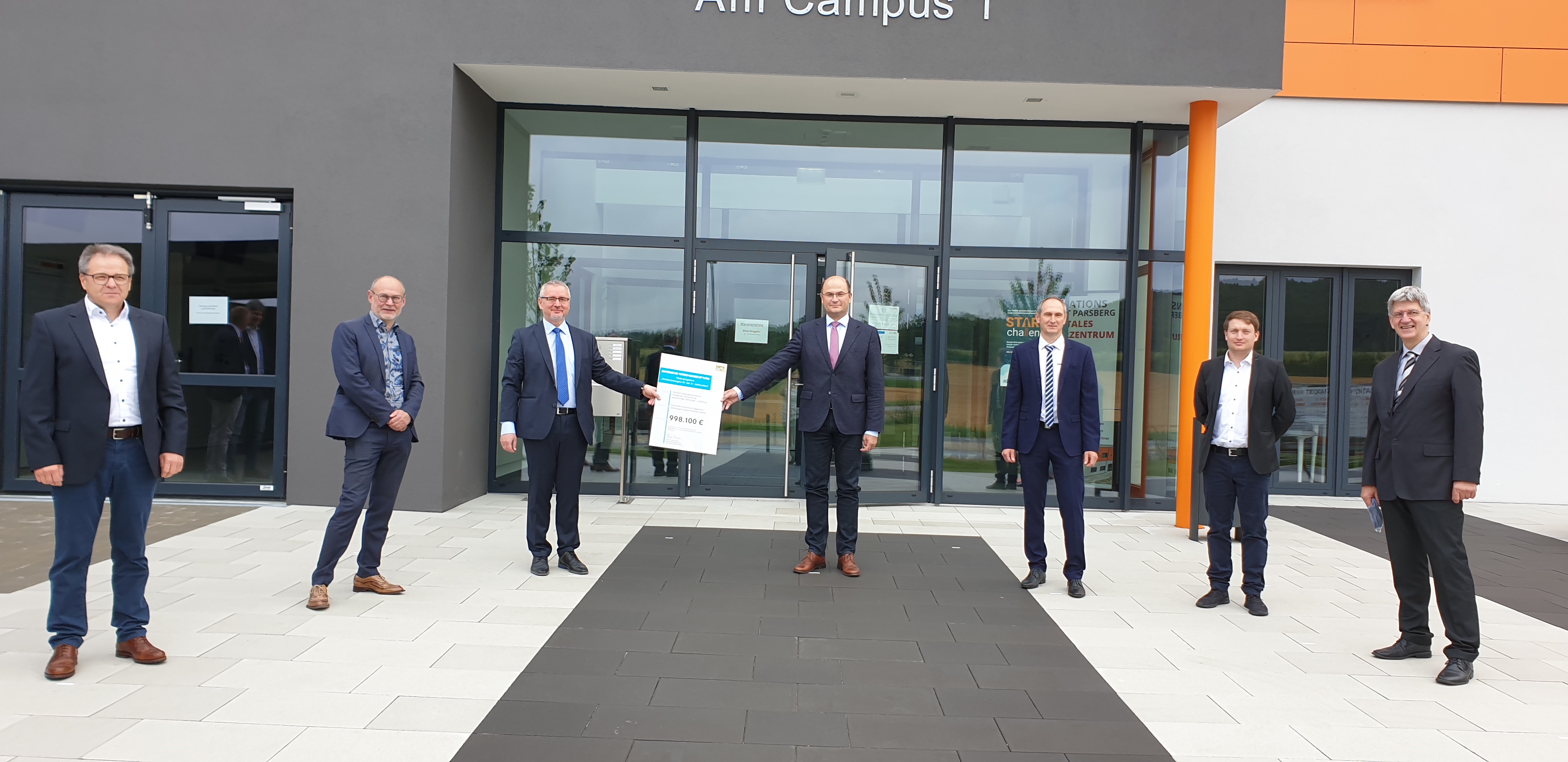 Der Bayerische Staatsminister der Finanzen und für Heimat, Albert Füracker, übergab am Samstag den 11. Juli die Förderurkunde für das Projekt „IntelliTemp: Hybride Fertigungskonzepte zur intelligenten Temperierung großvolumiger Werkzeuge“ an die Antragsteller Prof. Dr. Andrey Prihodovsky und Prof. Dr. Ludwig Gansauge.