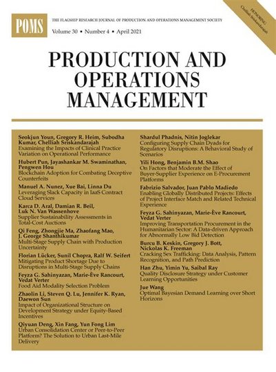 Prof. Christian Mandls aktuelle Forschungsergebnisse zur datengetriebenen Bestandsoptimierung unter Preisrisiken wurde im renommierten Journal Production and Operations Management veröffentlicht.