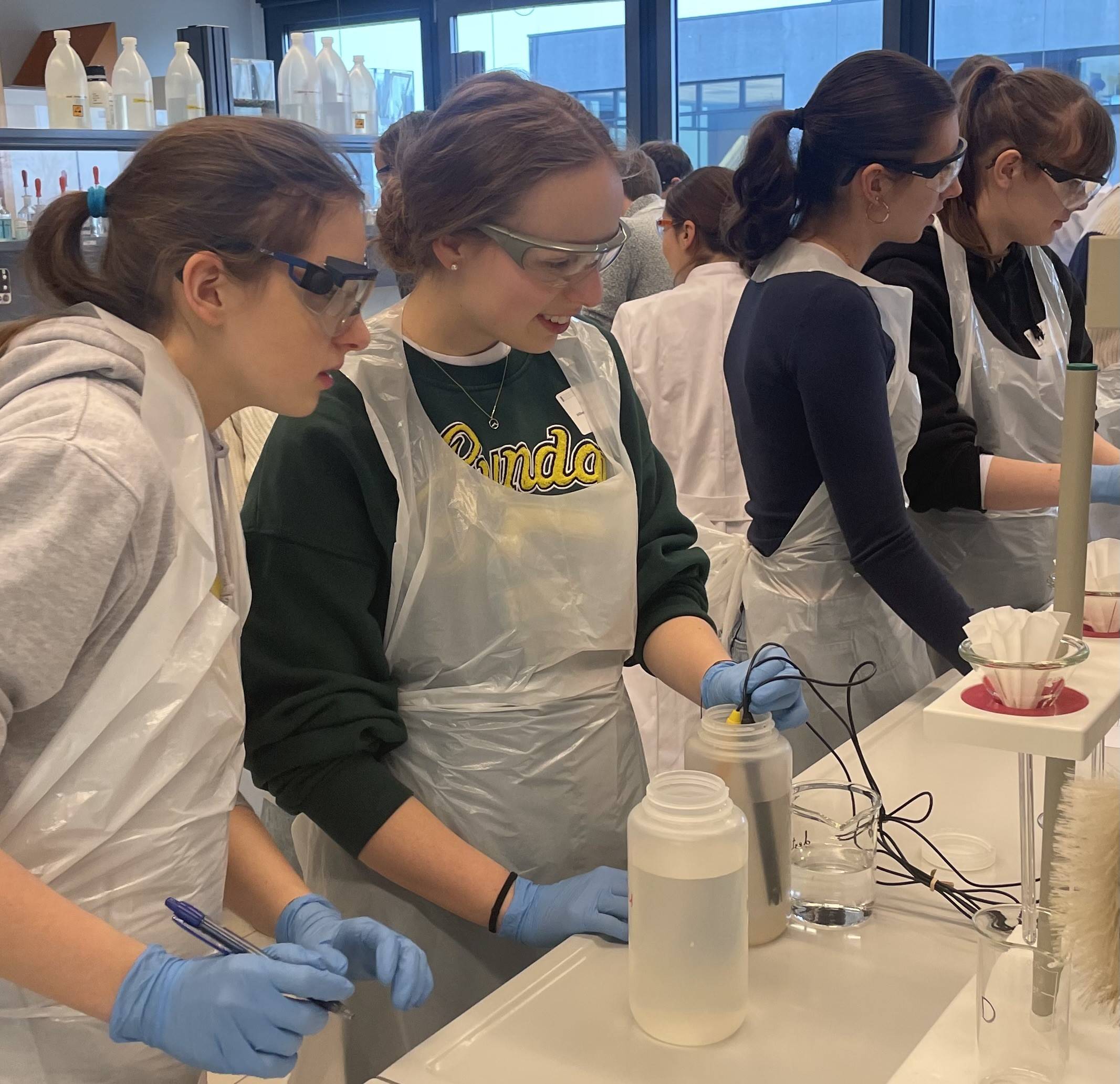 Bild (THD): Gewässeruntersuchung in den Laboren der THD mit frisch geschöpftem Donauwasser.