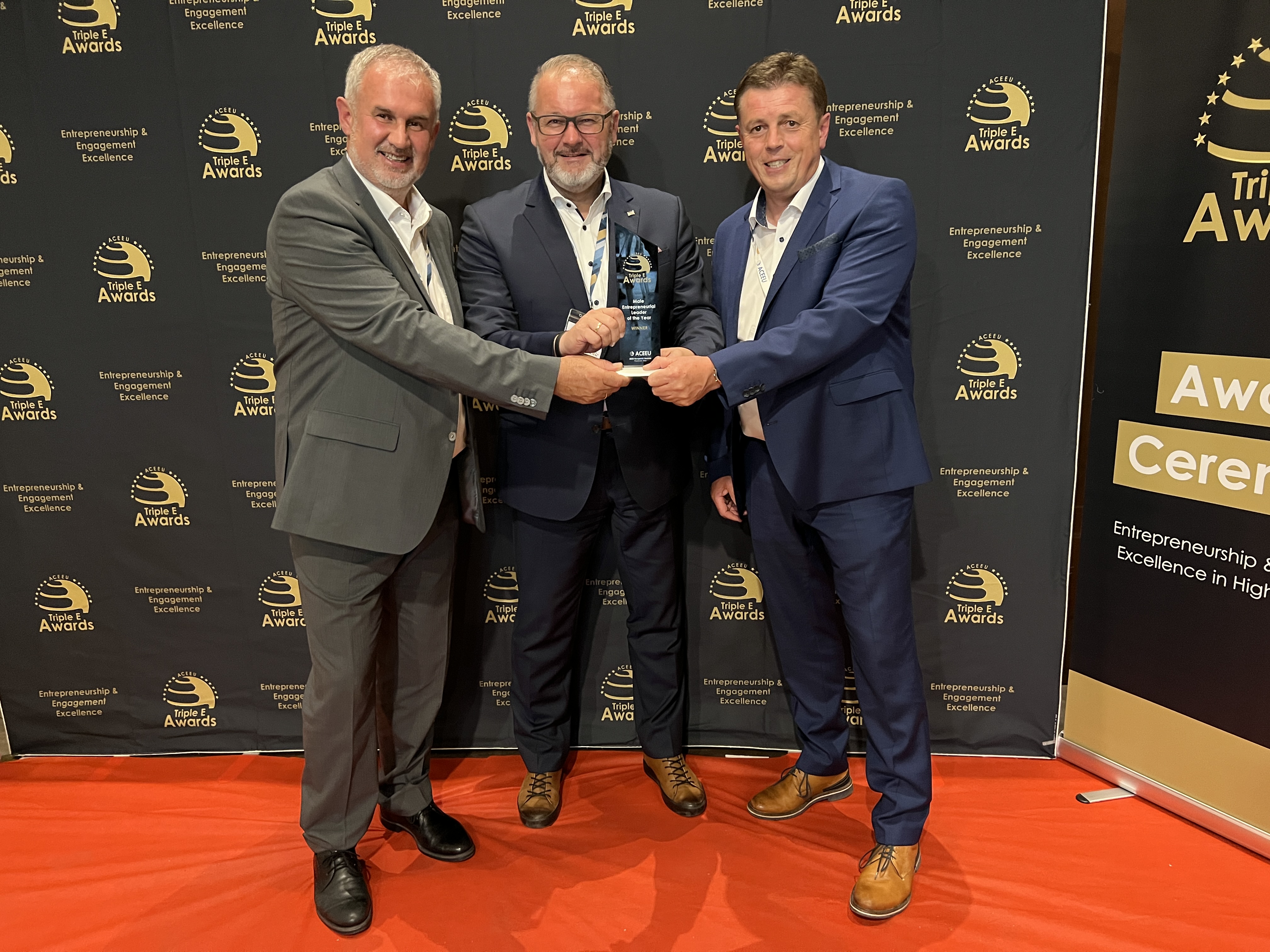 Bester Anführer für Gründer und junge Unternehmen in Europa. Überglücklich nahm Prof. Peter Schmieder seine Siegertrophäe entgegen, als sein Name als letztes und somit als Gewinnername von Prof. Dr. Thorsten Kliewe, Chairman der ACEEU (Accreditation Council for Entrepreneurial and Engaged Universities), genannt wurde. Eine hochkarätige, 60-köpfige Jury hatte die Entscheidung getroffen. „Die Konkurrenz war mit renomierten Mitbewerbern aus den anderen Ländern wirklich stark. Ich habe es natürlich gehofft, aber trotzdem nicht gedacht, dass mein Team und ich am Ende tatsächlich ganz vorne landen werden“, freute sich Schmieder „unbandig“ über den Triple-E-Titel. „Dies ist eine Auszeichnung für uns alle in Oberschneiding und für die Silicon Valley School. Es zeigt, dass wir auf dem richtigen Weg sind.“ Die drei „E“ des Preises stehen überigens für Entrepreneurship, Engagement und Education, also für Unternehmertum, Engagement und Bildung.