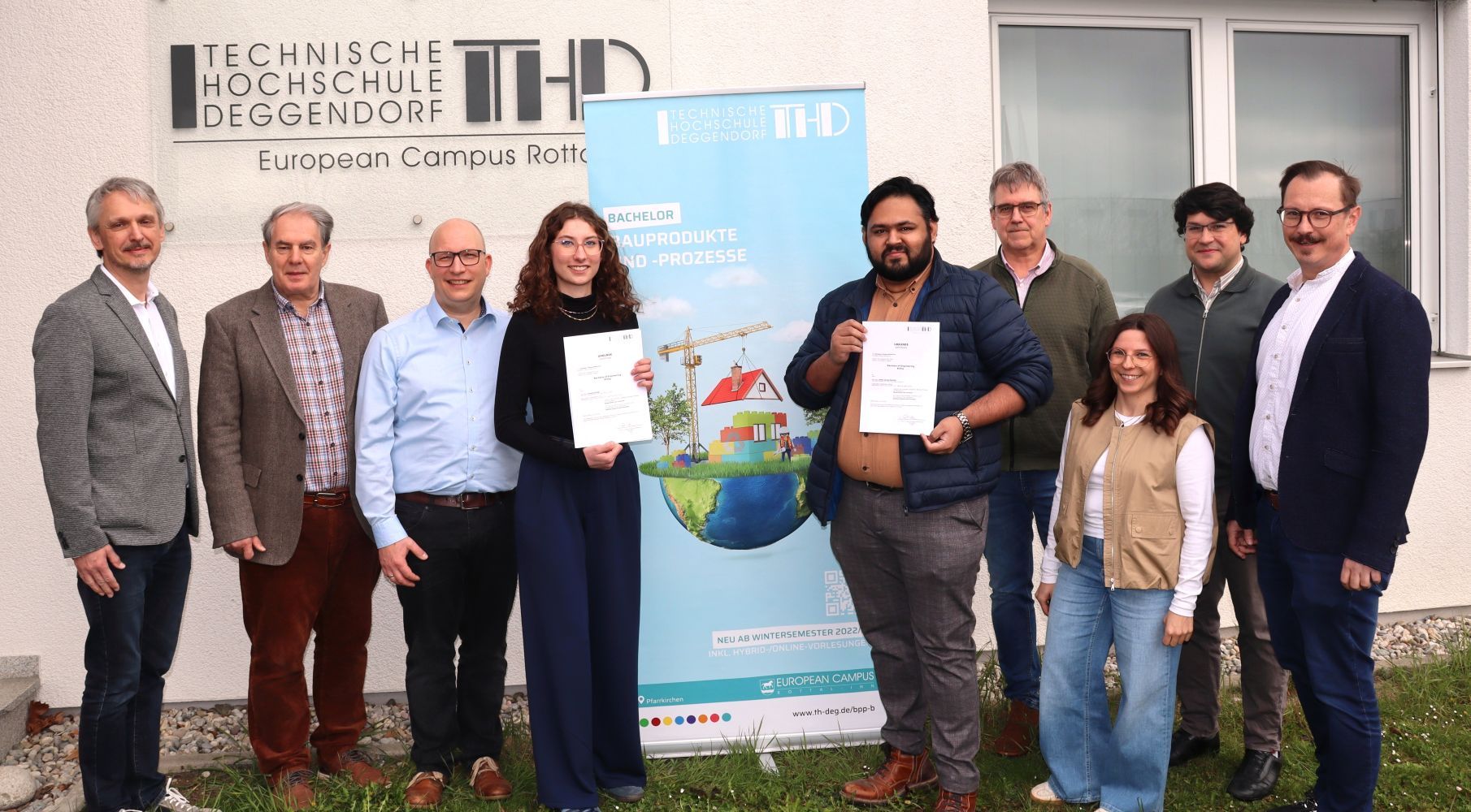 Neues vom European Campus Rottal-Inn (ECRI) der Technischen Hochschule Deggendorf (THD). Im Studiengang „Building Products and Processes“ (Bauprodukte und -prozesse) sind die ersten beiden fertigen Bachelor verabschiedet worden. Gute Aussichten: Während Johanna Einöder (22) im Qualitätsmanagement tätig ist, arbeitet Antony George Moonjelly (30) als Bauleiter.