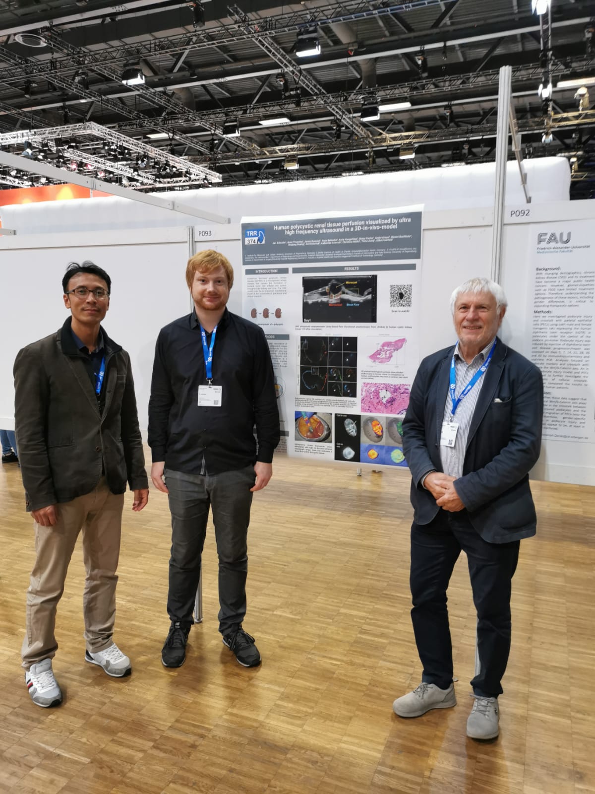 Bild (THD): Jan Schüler (Mitte) mit seinem Betreuer Prof. Dr. med. Thiha Aung (rechts) und Prof. Dr. Kurtz beim Kongress in Berlin.