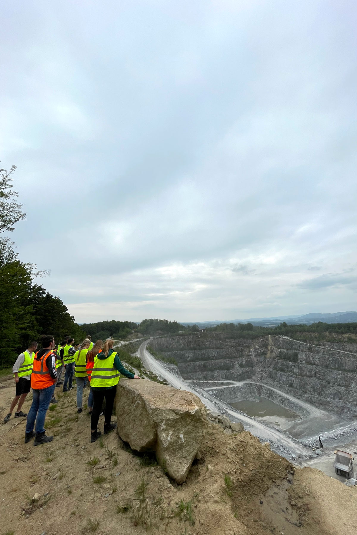 Besonderes Highlight ist immer das Beobachten einer Live-Sprengung im Steinbruch. Am 25. Mai 2023 war es wieder soweit und die Studierenden konnten dieser beiwohnen. Dabei waren sich alle einig: Wenn ca. 40.000 Tonnen Granit auf einmal gesprengt werden und der ganze Berg von der Erschütterung wackelt, ist das ein tolles, atemberaubendes, interessantes und auch ein bisschen angsteinflößendes Erlebnis.