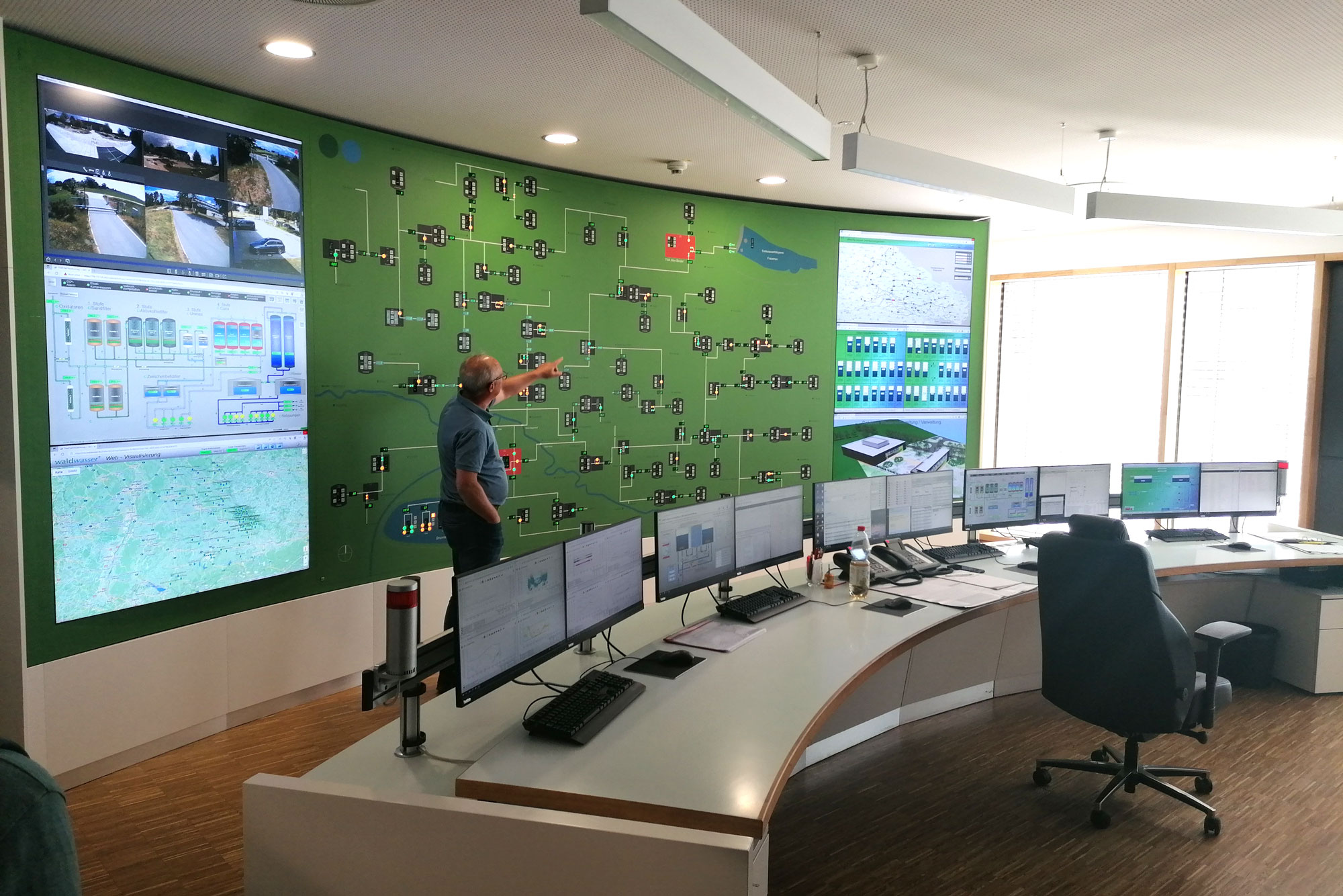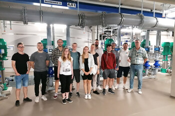 Die Studierenden waren beeindruckt von der aufwendigen Anlagentechnik, die zur Wasseraufbereitung geplant, gewartet und instandgehalten werden muss. In der Steuerzentrale Moos werden hunderte Pumpen im 950 km langen Rohrnetz überwacht.