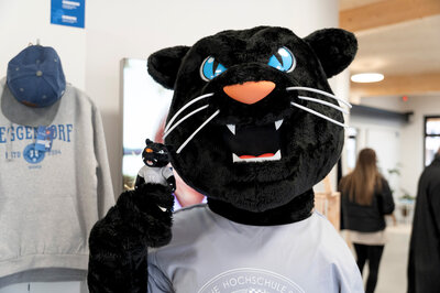 Im Sport vollkommen normal: das Maskottchen. Und weil die Technische Hochschule Deggendorf ebenfalls die Ambitionen hat, stets in der Ersten Liga mitzuspielen, hat sie eben auch eines. Den Deggster. Mit ggs statt x, denn er ist ein ganz ein lieber Kerl. Auch wenn manche ihn spontan für einen Tiger halten mögen, der Deggster ist in Wirklichkeit natürlich ein Panther. Das liegt daran, weil der (rote) Panther das (alleinige) Wappentier Niederbayerns ist. Surprise, denn viele Menschen würden wohl instinktiv den Löwen als DIE bayerische Katze benennen.