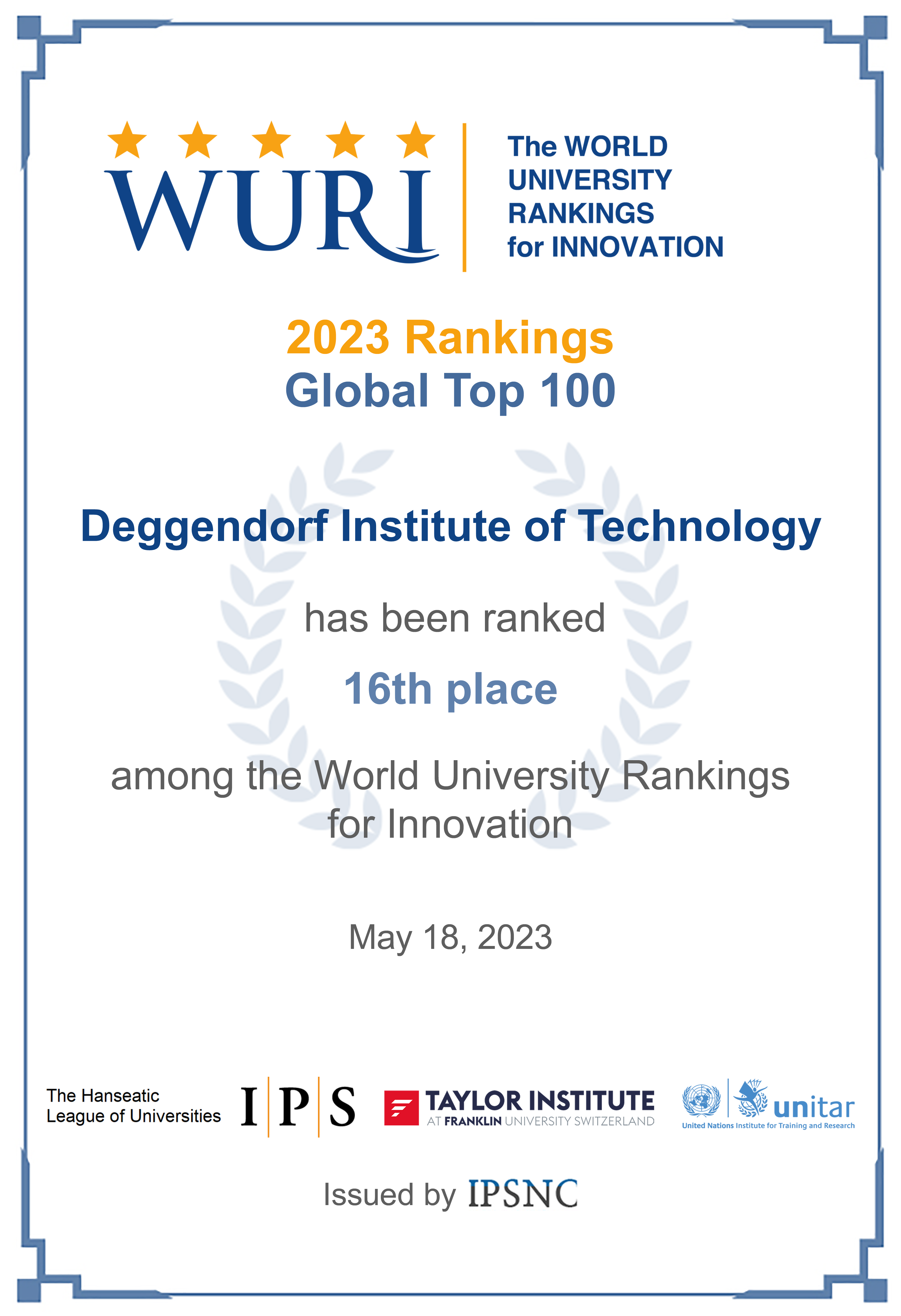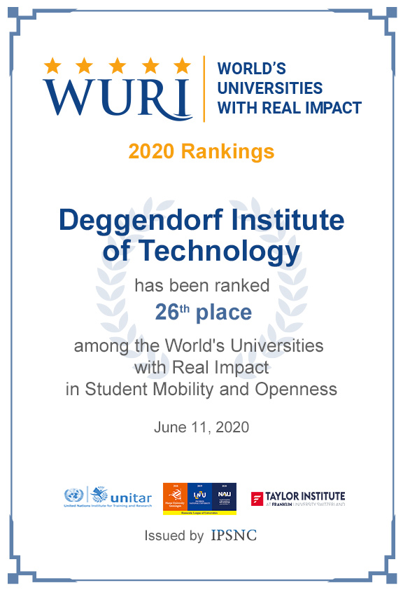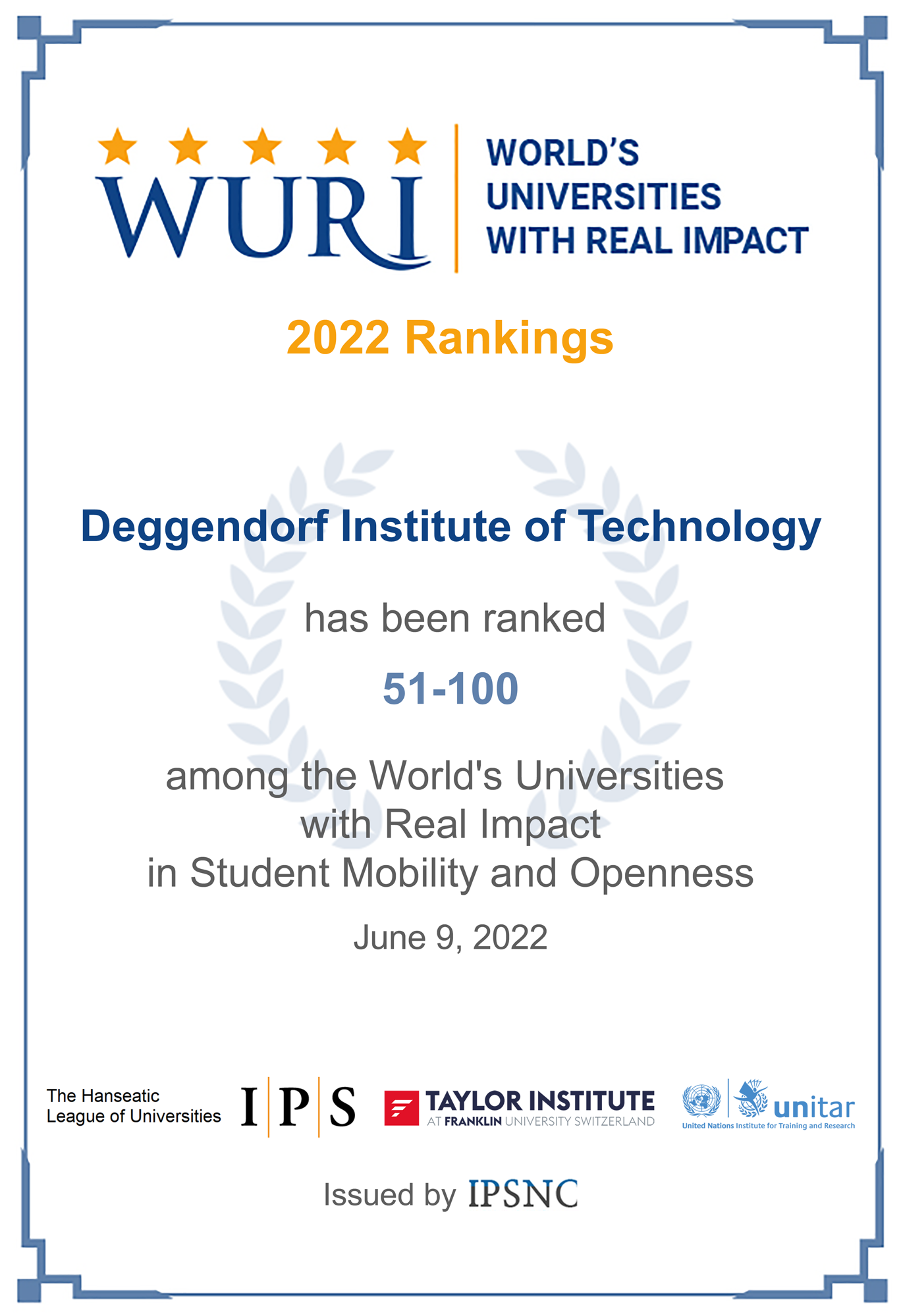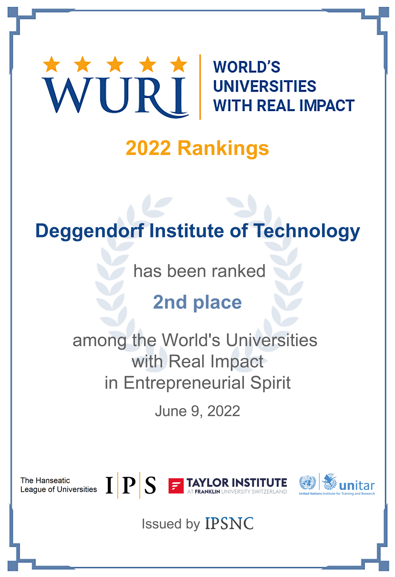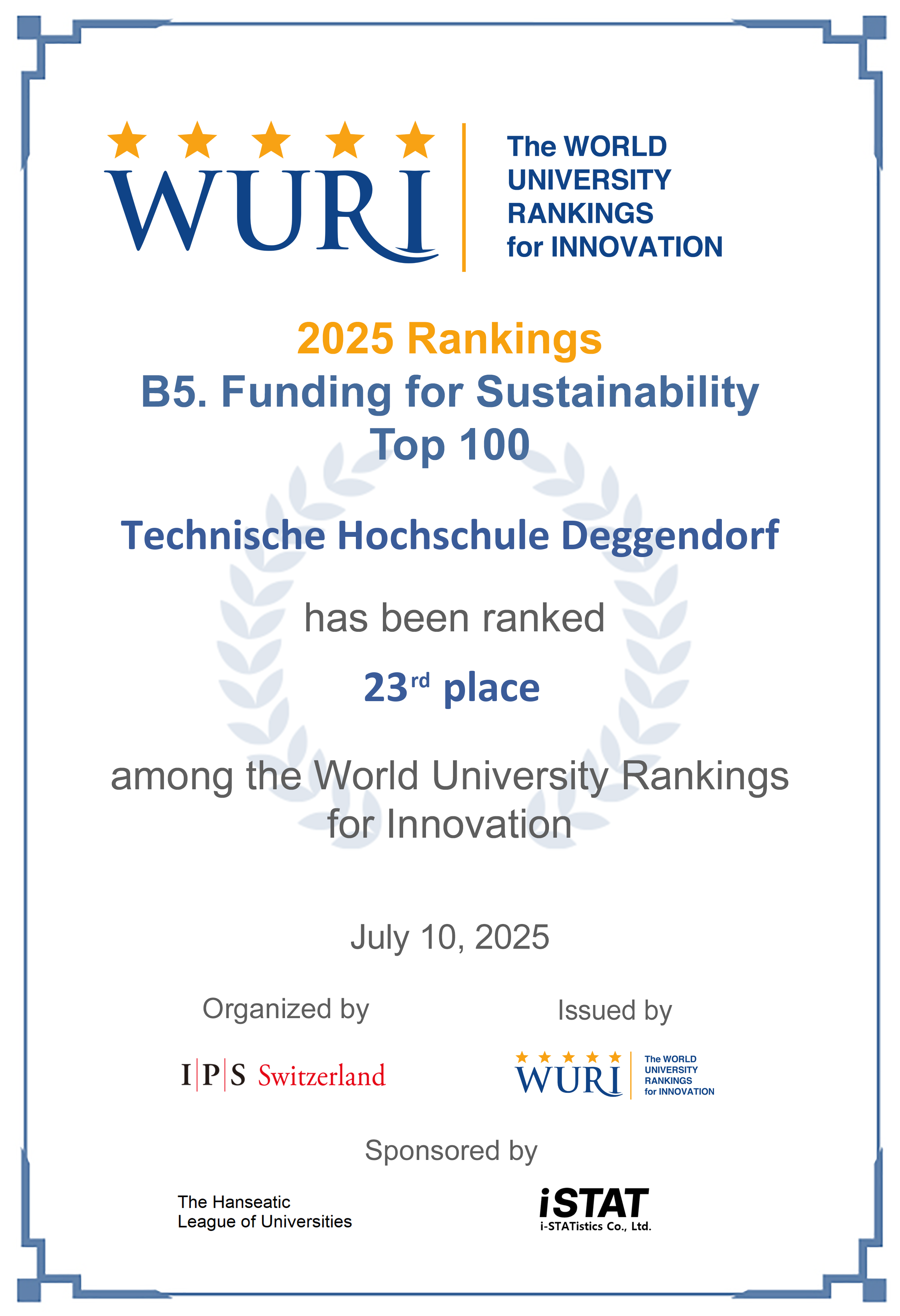 Mit tiefen Wurzeln in ihrer niederbayerischen Heimat, hat sich die Technische Hochschule Deggendorf seit 1994 zu einer der erfolgreichsten Fachhochschul-Neugründung der 90er Jahre in Bayern entwickelt. Diesen Erfolg konnte im Gründungsjahr keiner erahnen. Die Zukunft immer fest im Blick, hat es die Technische Hochschule Deggendorf aber geschafft: mit dem sukzessiven Aufbau attraktiver Studienfelder, ergänzt durch ein ansprechendes Weiterbildungsangebot, intensiver Forschungstätigkeit und Wissens- und Technologietransfer zur regionalen Wirtschaft, Aufgreifen wirtschaftlicher und gesellschaftlicher Trends und die Pflege regionaler und internationaler Kontakte.