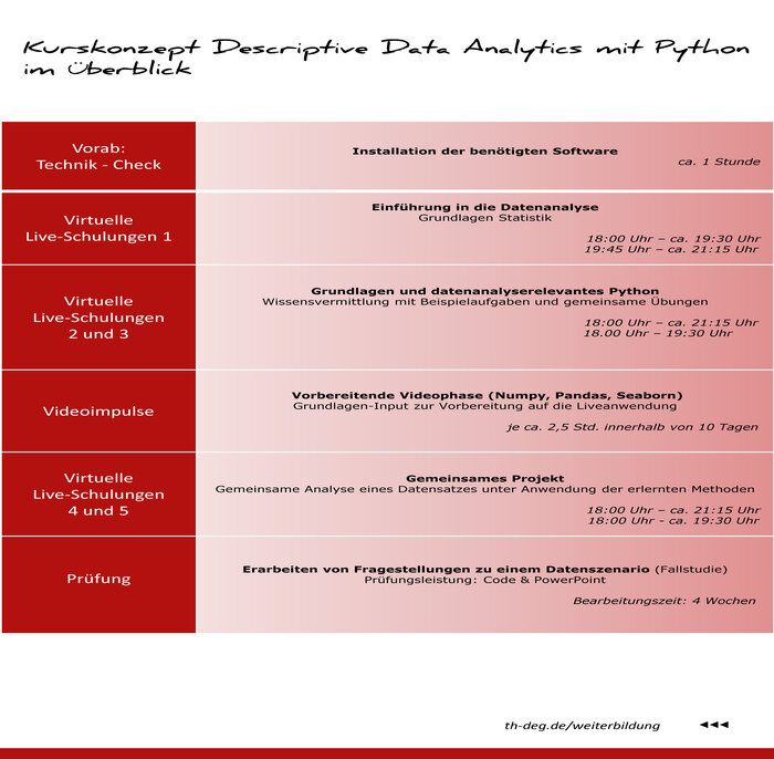Wir empfehlen, die aufgeführten Kurse in der angegebenen Reihenfolge zu absolvieren, um den größtmöglichen Lernerfolg aus unserer Data Science-Weiterbildung zu erzielen.