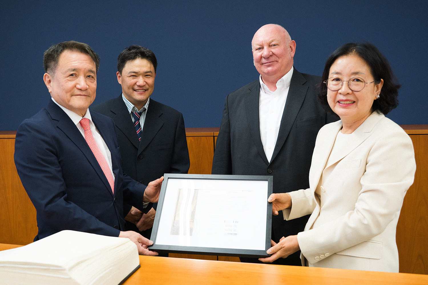 In addition to the ceremonial signing of the agreement, an initial planning meeting was held in Deggendorf to discuss key organisational and thematic aspects of the event. The MoU was signed by Prof. Waldemar Berg, President of Deggendorf Institute of Technology, together with South Korean representatives Prof. Dr. Dong-sung Cho, Founder of the WURI Foundation, Jeong-wan Cho, CEO of the WURI Foundation, and Prof. Dr. Jin-suk Kim, President of the Institute for Nation Brand Promotion.