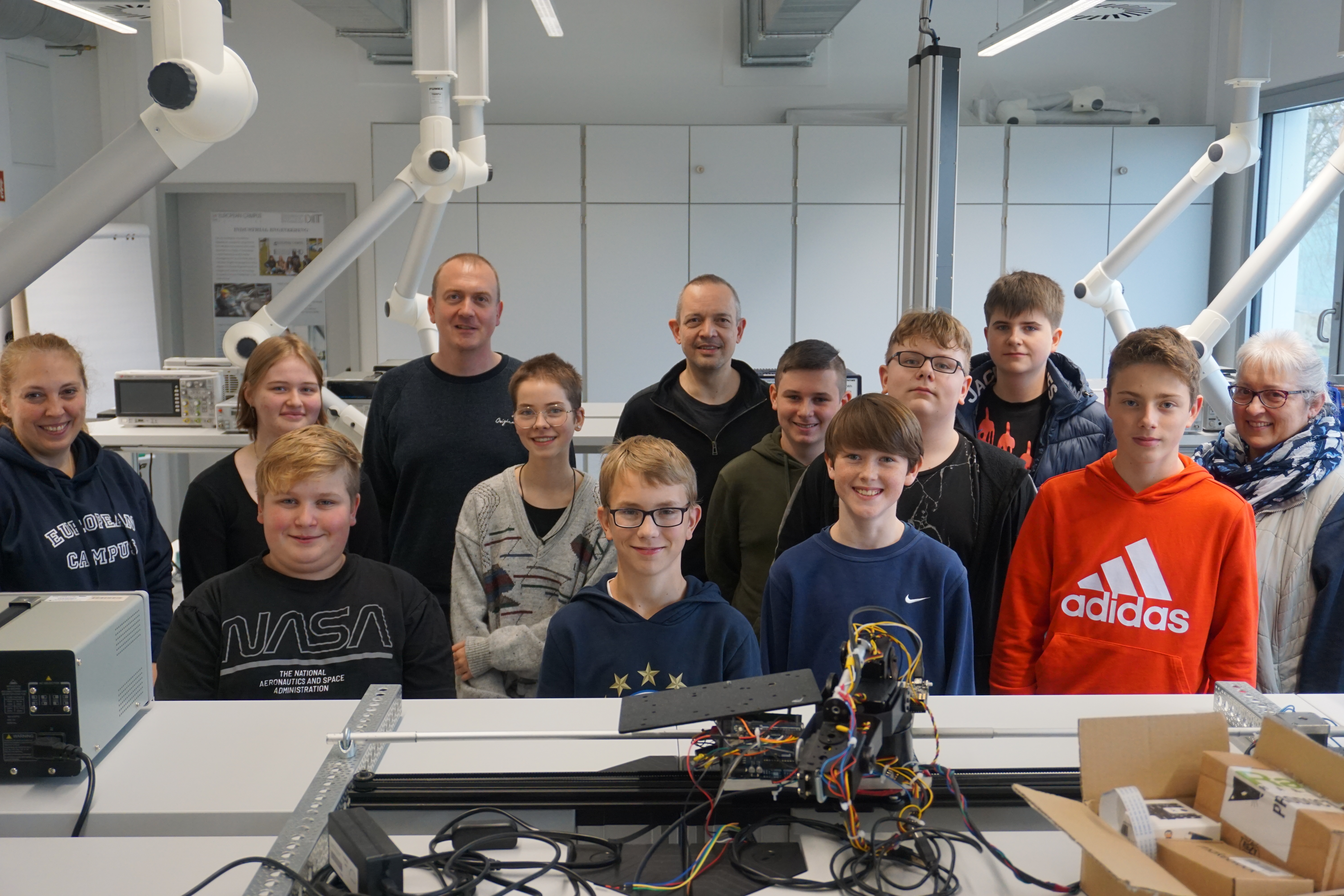 On 23 November, pupils from the Realschule Pfarrkirchen (RS-PAN) visited the European Campus Rottal-Inn (ECRI) for a soldering practical. The knowledge and skills acquired there will be used in the RS-PAN's event workshop in the future.
