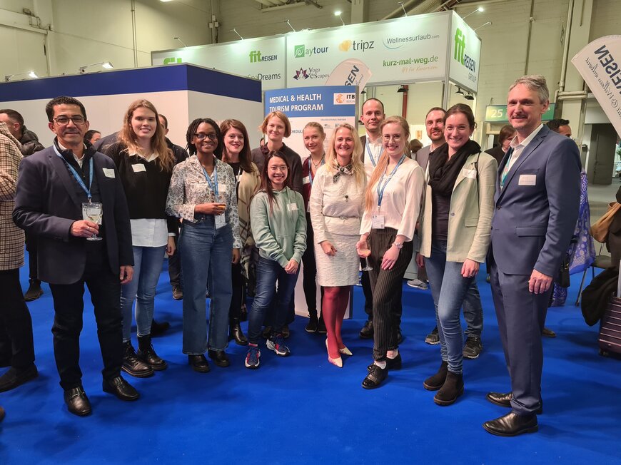 "The ITB is an excellent opportunity to establish contact between our students and representatives of leading European associations and companies in health and medical tourism," explains the Dean of ECRI and also Pfarrkirchen delegation leader in the capital, Prof. Dr. Christian Steckenbauer. The tourism industry suffers particularly from the shortage of skilled workers, and that sector, which is specifically dedicated to health, is no exception. "Qualified employees are desperately sought after," says Steckenbauer. As a networking event, ITB is a perfect opportunity for the international students at ECRI to make valuable personal contacts for their future careers. In addition, the young people were able to get a taste of the trade fair at the stand of the European Spas Association (ESPA) and actively experience how this tourism trade fair, after all the largest of its kind in the world, is run. Up close, in front of and behind the scenes. The "get-together" at the ESPA Medical & Health Tourism Pavilion was a great experience.