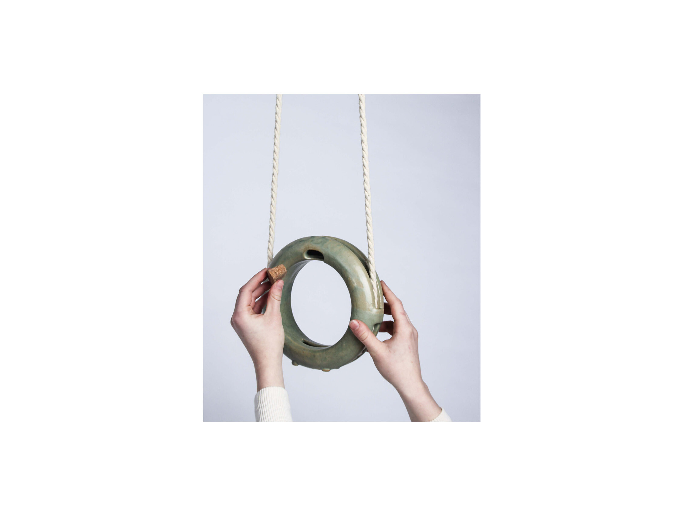 The combination of ceramic, cotton rope and cork makes this product sustainable, robust and easy to clean.