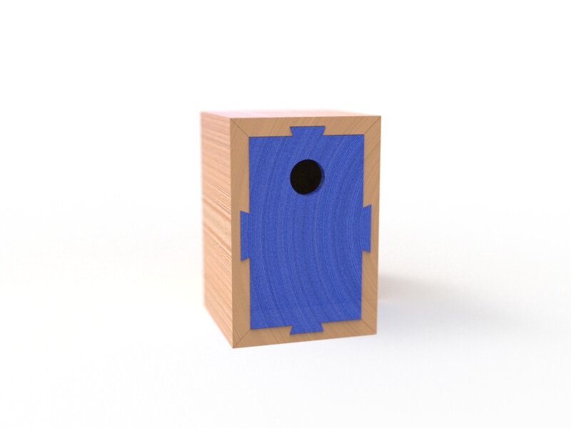 Keeping a possible industrial production in mind was also a concern for us when designing our bird house. The parts made of wood can thus be efficiently manufactures from board materials completely with a CNC milling machine.
