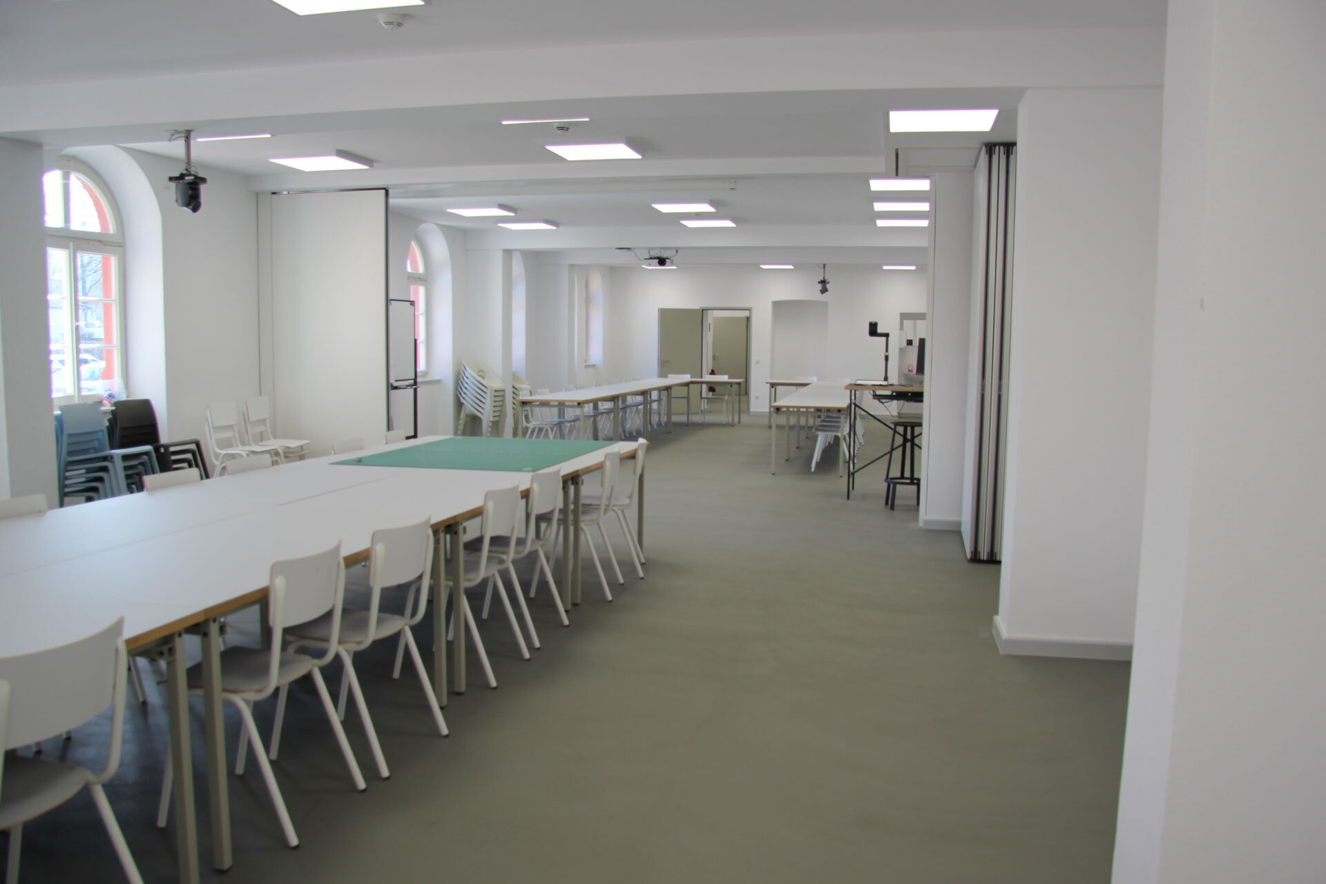 The rooms offer space for imparting knowledge through the two lecture rooms, which can also be used flexibly as a workshop area.