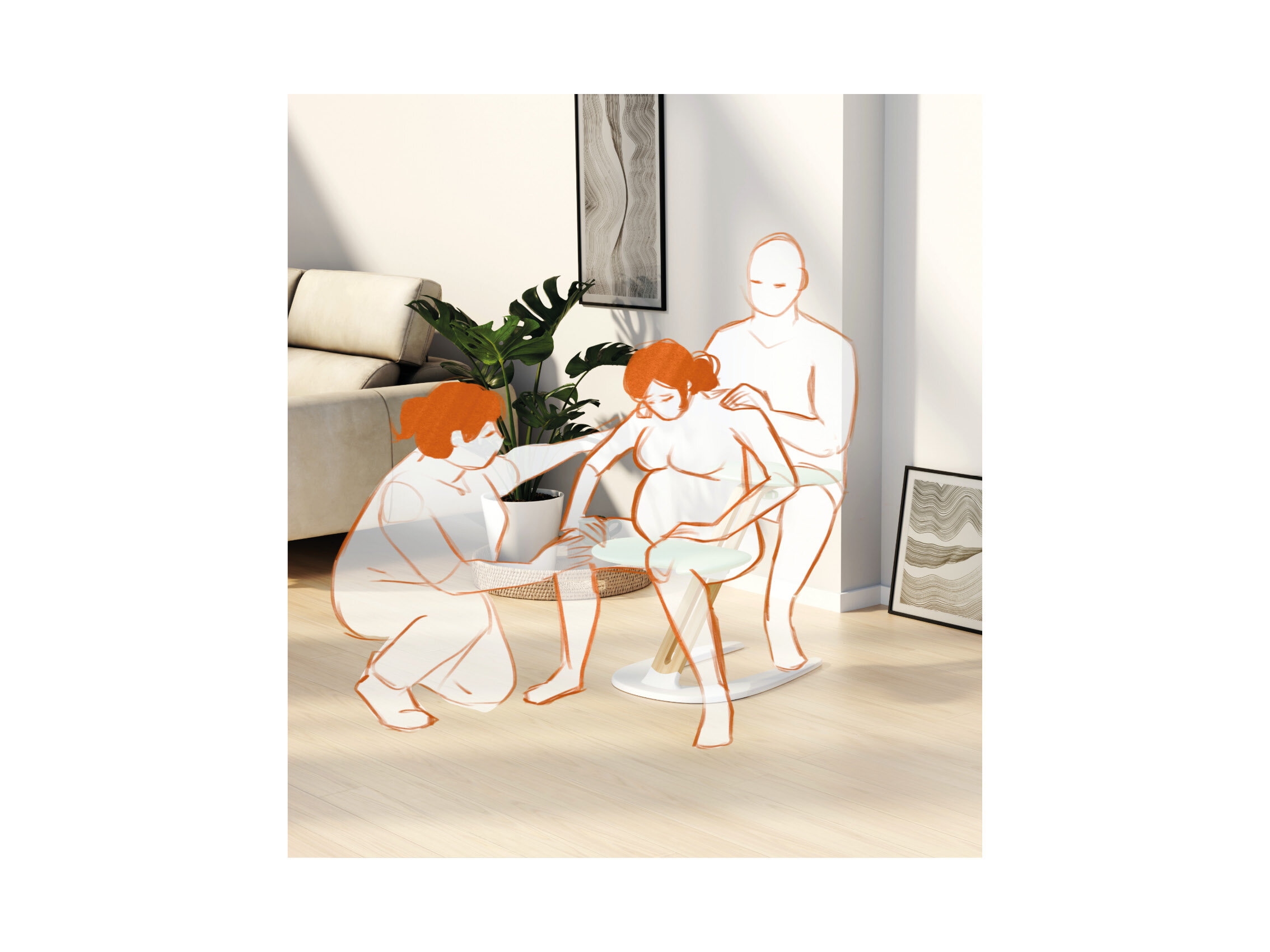 The design process resulted in a modular birthing stool with an adjustable, ergonomic seat modelled on a water lily leaf. The concept allows for a variety of upright positions that can be adopted regardless of the space available.