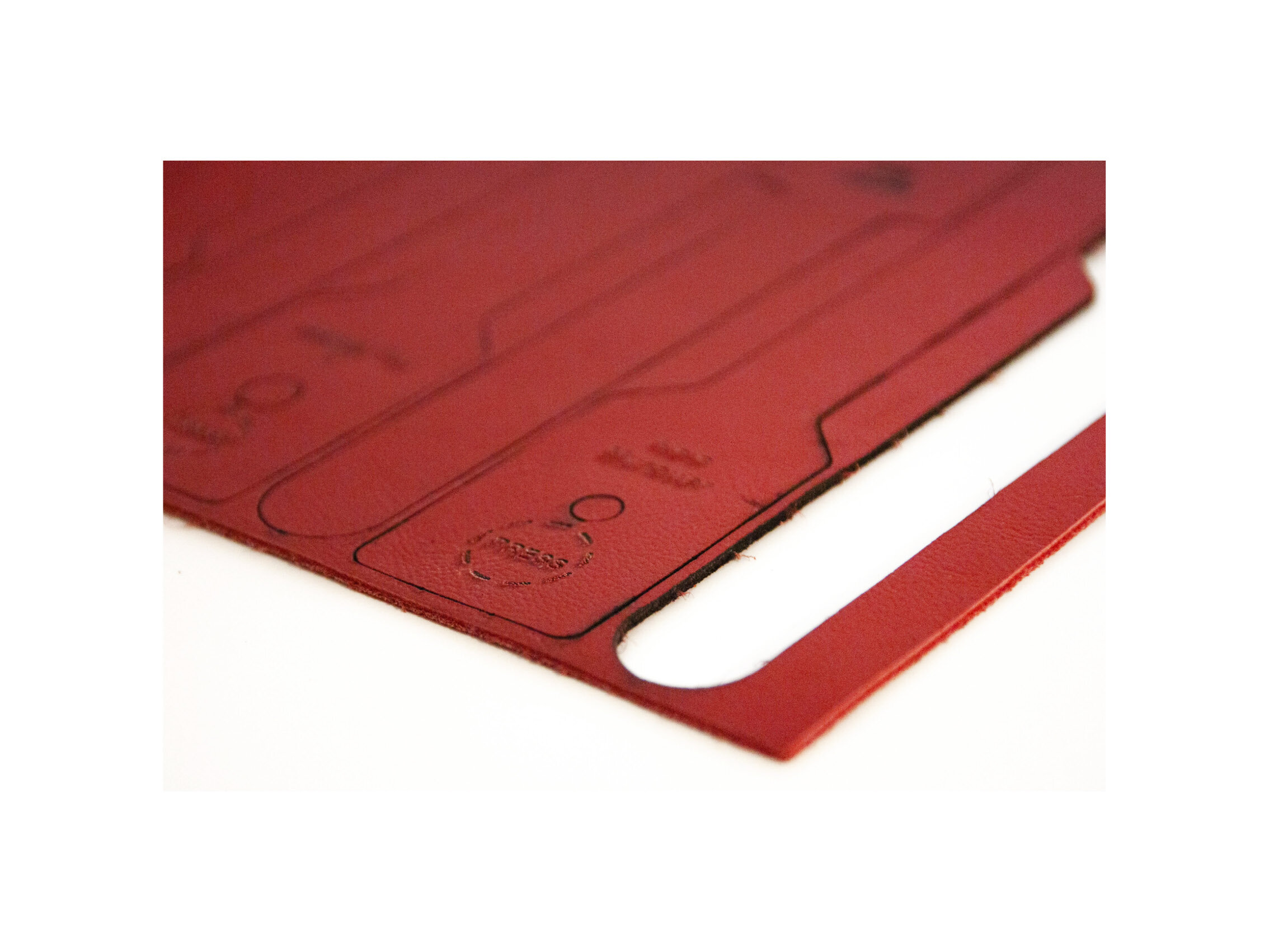 The material used is BMW's own leather scraps from production. The shaped leather is glued to the front of the TAG. The use of scrap material makes the design cost-effective and keeps the ecological footprint low.
