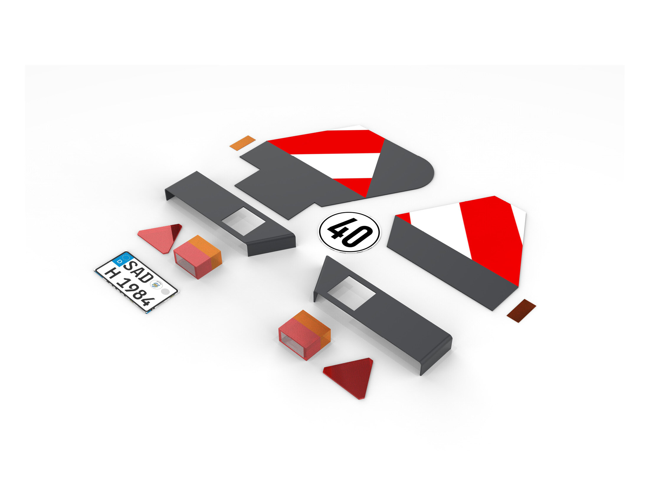 This design takes lighting design and the integration of safety-relevant components in agricultural machinery to a new level. The originally straight profile, to which the lighting and signal unit is attached, is bent to the left and right to create enough space for the signal foul above the profile. In this way, legal requirements and installation space restrictions are complied with, which are caused by various folding mechanism on the machines. Above all, the fold offers aesthetic added value and helps to distinguish Horsch machines from the competition at first glance. To enhance the dynamic effect, the signal foil is also kinked, which contributes to a striking overall look.