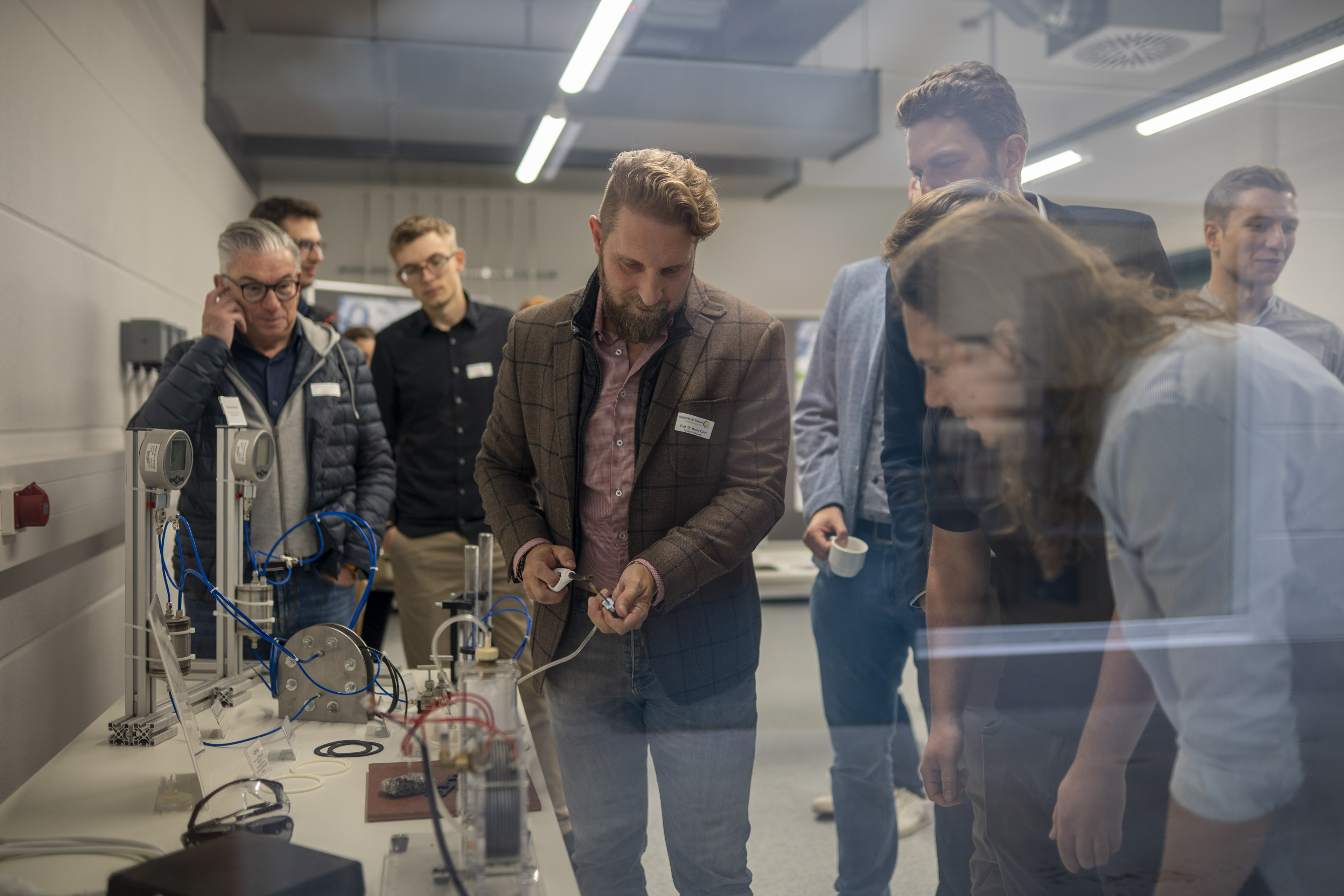 Am Nachmittag stand die Führung durch den Technologie Campus mit Laborbesichtigung im Mittelpunkt, bevor Prof. Dr.-Ing. Bernd Kuhn (TC Wörth-Wiesent) die zukünftige Verfügbarkeit von grünem Wasserstoff beleuchtete.