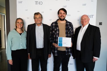 Am 24. Oktober verlieh die Technische Hochschule (THD) zum neunten Mal das Stipendium der J. C. Römer Stiftung, an Martin Schreiner. Der Softwaredesign-Student im ersten Semester erhält über die Förderdauer von vier Semestern monatlich 200 Euro. Darüber hinaus profitiert er vom großen Netzwerk der Fördergesellschaft. Die Stiftung aus Grafenau unterstützt damit Meister und beruflich Qualifizierte wie ihn bei ihrem ersten akademischen Hochschulstudium im technischen Bereich.