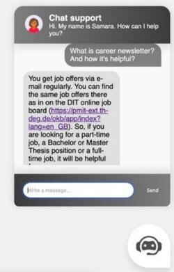 A student project group designed an extensive catalogue of questions about studying at the Cham campus. In cooperation with the respective university departments, the project group defined correct answer patterns for the questions asked and fed them into the system. The technical application recognises the user input, compares the predefined answer patterns and should, for example, help prospective students navigate better through the wealth of information on the website in the future.