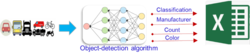 The YOLOv5 object detection model is used for training of vehicle classification and its manufacturer. Deep sort algorithm is used for tracking and counting (figure 1). Figure 2 shows the video capture by the camera. The vehicle characteristics viz type, count, manufacturer and color as well as the time instance has been stored in excel file (Figure 3). The model has been evaluated on the test data with an accuracy of 89%. The AI hardware used are Jetson Nano and camera (Figure 4). The watch box design for the hardware is shown in Figure 5.