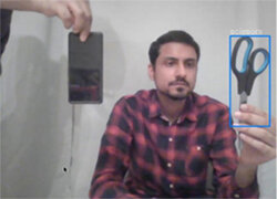 The student is always focused on a pair of scissors, when the focus of vision and scissors are recognised by the neural network.