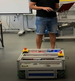 In addition to classic lectures, there is also the dynamic concept of case studies in our four master's programmes and the practical "Project Module" in this bachelor's programme. Here, student working groups are formed to deal with a specific research topic in an application-oriented manner during the semester. As part of the bachelor's "Project Module", a driverless transport system has been implemented that autonomously travels to defined stations, e.g. loaded with tools.