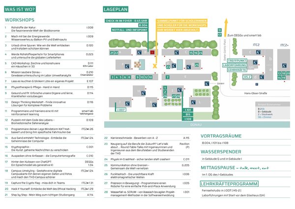 Die Welt der Molekularbiologie, eine Künstliche Intelligenz programmieren und trainieren, Computertomographie, Roboter-Rallye, ein Blick hinter die Kulissen von ChatGPT oder Leistungsdiagnostik im Sport – nur eine Auswahl der Workshops, die im Rahmen von MINT100 an der THD geboten wurden. Bei allen stand ein Motto im Vordergrund: „Hands-on – Machen statt Reden“. „Unser Programm zeigt, wie vielfältig MINT tatsächlich ist. Das gilt für die Forschungsfelder, Studiengänge wie auch die vielen verschiedenen Tätigkeitsbereiche im Job. Genau das möchten wir den Schülerinnen und Schülern zeigen und sie durch intensives Ausprobieren für die vielen Themen begeistern“, bekräftigt Angelika Hable, Organisatorin des Tages vom MINT-Team der THD. Zwei Impulsvorträge konnten alle Anwesenden in ihren Bann ziehen. Prof. Peter Schmieder referiert über das Silicon Valley Program der THD und warum die Hochschule für ihren Gründer-Geist in einem internationalen Ranking mit Platz 1 ausgezeichnet wurde. Prof. Dr. Melanie Kappelmann-Fenzl trug über Gensequenzierung in Forschung und Medizin vor und erklärt, welch bahnbrechende Möglichkeiten in Diagnose und Therapie von Krankheiten hier möglich sind. Eine gemeinsame Mittagspause in der Mensa und Infostände zur Studienorientierung, dem Dualen Studium sowie verschiedener Unternehmen und Initiativen der Region auf dem Campus rundeten das Programm ab.