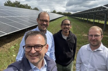 Bei der Besichtigung des Versuches der Masterarbeit in dem PV-Park waren sich Prof. Huber vom ECRI, Jan Kiermeier, Geschäftsführer der sunbird energy GmbH und Harald Eder von FinRo® einig, die Kooperation zwischen dem Campus und den Betreibern der Anlage weiterzuführen und auszubauen.