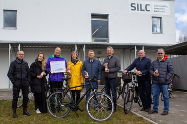 Als Nachhaltigkeitscampus setzt der ECRI seit Jahren auf diverse Maßnahmen, um das Fahrradfahren zur Arbeit attraktiver zu gestalten. Im vergangenen Jahr wurden bereits bestehende Angebote, wie die „Bike Station“, um ein ganzes Konzept erweitert und ausgebaut. Unter Leitung des Nachhaltigkeisbeauftragten der Hochschule, Prof. Dr. Michael Laar, und seiner wissenschaftlichen Mitarbeiterin, Laura Hoffmann, wurden unter anderem Mitarbeiterfahrräder und Sanitäranlagen für fahrradfahrende Mitarbeitende eingeführt und ein Radlwettbewerb durchgeführt. Unterstützt wurden die beiden dabei vom Nachhaltigkeitslabor des ECRI. Das Maßnahmenpaket kam beim adfc, dem Allgemeiner Deutscher Fahrrad Club, so gut an, dass dieser der Hochschule bei der EU-weiten Zertifizierung „Fahrradfreundlicher Arbeitgeber“ das Siegel in „Silber“ zusprach und das nach nur insgesamt neun Monaten statt der üblicherweise zwei bis drei Jahre, welche die Zertifizierung sonst in Anspruch nimmt. Petra Husemann-Roew, Landesgeschäftsführerin beim adfc-Landesverband Bayern, sagt: „Die Hochschule unterstützt die Mitarbeiterinnen und Mitarbeiter, die das Fahrrad für den Arbeitsweg nutzen, mit vielen verschiedenen Maßnahmen. Das bringt viele Vorteile: Der Arbeitgeber kann so beim betrieblichen Gesundheits-, Umwelt- und Mobilitätsmanagement punkten.“