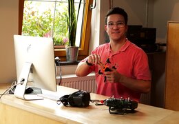 Daniel Fuchs is the founder of the start-up threesixty-drones. His business idea is based on a specially designed drone for 360-degree video recording. Less than a year after presenting his innovation at the Deggendorf Institute of Technology (DIT), the 21-year-old is an independent entrepreneur and offers the creation of promotional videos using drones as a service. The "Kickstart Incubator" funding programme, which is still fairly new at the university, helped him along the way.