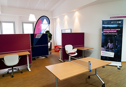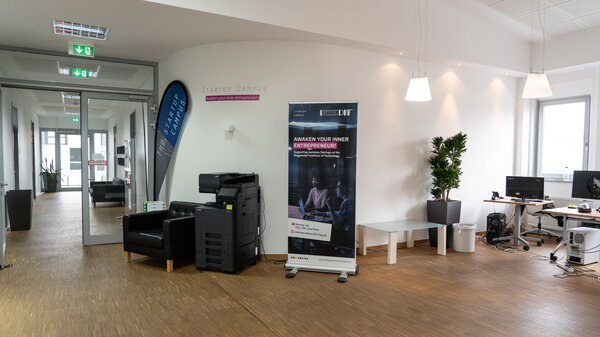 Together with the Startup Lab, the Startup Campus is a central contact point for all those interested in starting a business at the university. Through the rented space, the Startup Campus provides founders with a creative working environment. Teams that are currently being mentored and supported are allowed to use the office space, the co-working space and the seminar room. The Startup Lab is open for everyone to visit and exchange ideas.